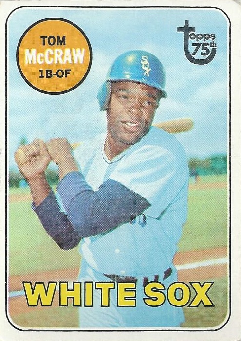 Here's the last of the trio of '69 buybacks for today, journeyman first baseman/outfielder Tommy McCraw. After his retirement, McCraw spent over two decades as a batting coach at the Major League level, a position he held with various franchises until as recently as 2005! This card makes the set without contest as well.